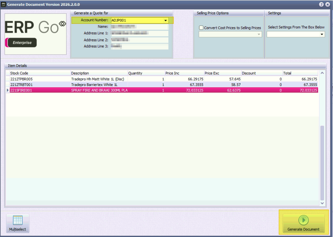 Make sure to confirm that the selling prices are correct before invoicing the quote.