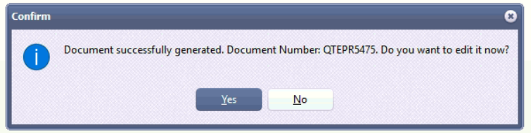 The dialog will appear like below, click on the Yes button to open the Quote.
