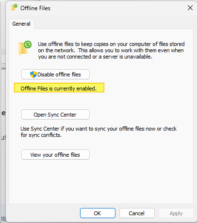 To maintain data integrity and ensure real-time processing, we strongly recommend disabling Offline Files on all client machines accessing IQ/ERP Go via a network drive.