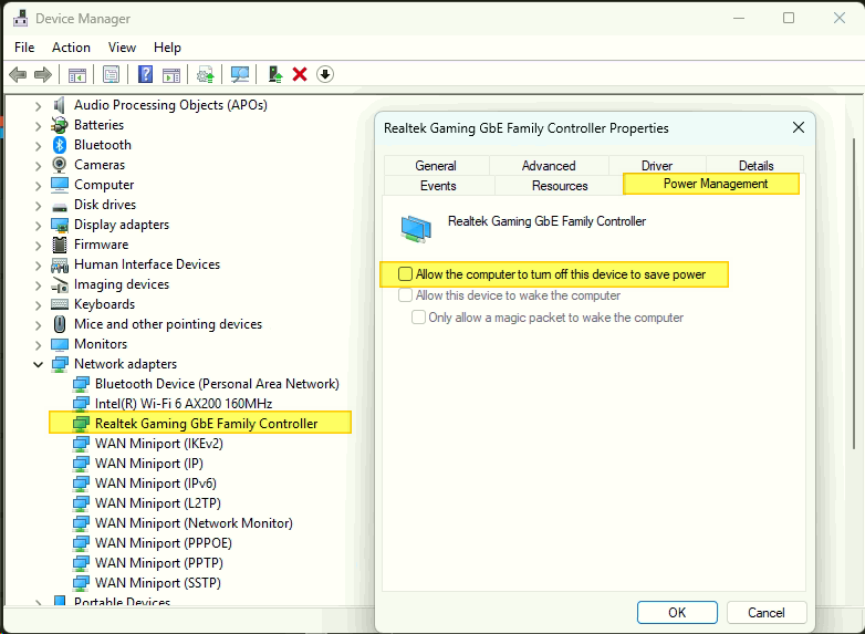 1. Disable Power-Saving Settings on the Network Card and USB Ports