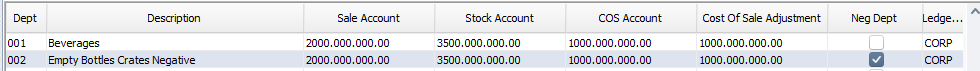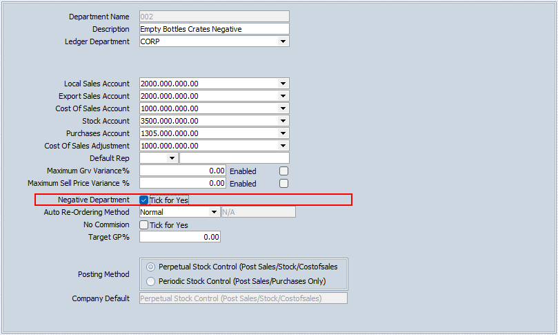 To link the Empty Bottles Crates Negative department as a negative department ensure that the negative department tick is ticked in the department setup: