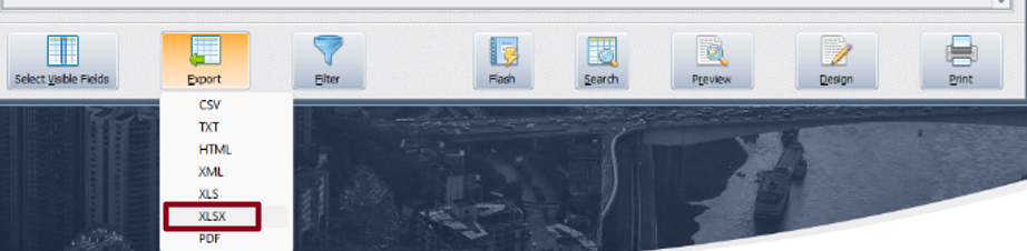 - To export the report to excel click on Export at the bottom left of the screen and choose XLSX