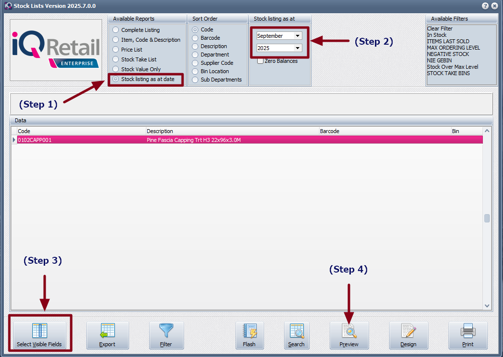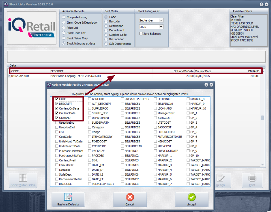 (Please note that certain relevant content from the IQ Retail Training Team was used to develop this knowledge base article.) Overview: This article will guide you on how to use and generate the stock lists reports. Steps to follow: - Select the ...