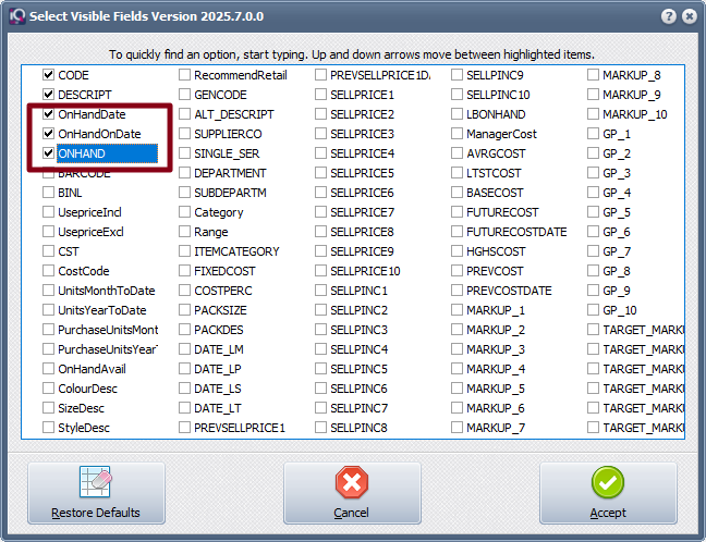 This article will explain the process to follow, when exporting the Stock Value as at Date report to excel format, to ensure that you have the current on-hand; as well as the on-hand on date selected in the file.
